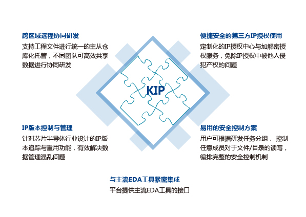 基于知識產權保護的協(xié)同研發(fā)與IP數(shù)據(jù)管理平臺 用戶友好的IP追溯與重用系統(tǒng),支持網 頁端操作,提供IP版本標定,發(fā)布,重 用,文件倉庫管理,主干分支操作,記 錄回滾,文件對比, IP加解密及授權管理等功能。